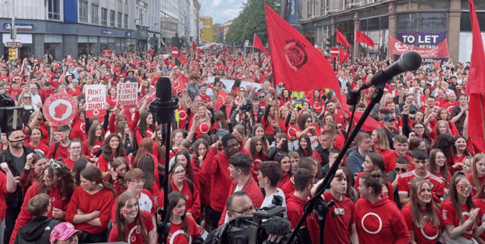 It is important that we oppose both the denial of rights, but also the promotion of rights in a way which is one sided and is designed to increase division. Examples of issues in which there are rights on both sides are contentious parades, the flying of flags in public places, and the use of language. In the 1990s the Socialist Party pioneered an approach on the issue of contentious parades which focused on recognising the rights of each community, but also on the over-arching right of the working class as a whole not to be dragged into conflict. At the height of the conflict around the Drumcree parade in the mid-1990s our voice was isolated. Nevertheless, we took our arguments to the eye of the storm, speaking to groups on the Garvaghy Road in Portadown and the Bogside in Derry. Over time the approach we advocated became widely accepted. Our position on the many other secondary issues is to take a similar approach. We recognise that each community has rights but so too does the working class as a whole. Every issue must be approached from this standpoint.