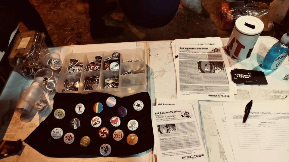 A photography exhibition by Aretha Vasiliou Tiniakou (Pomfolyga) was also hosted on the spot, while Grigoris Kokkinos created a very nice banner that will decorate future editions of the Art Against Fascism festival.