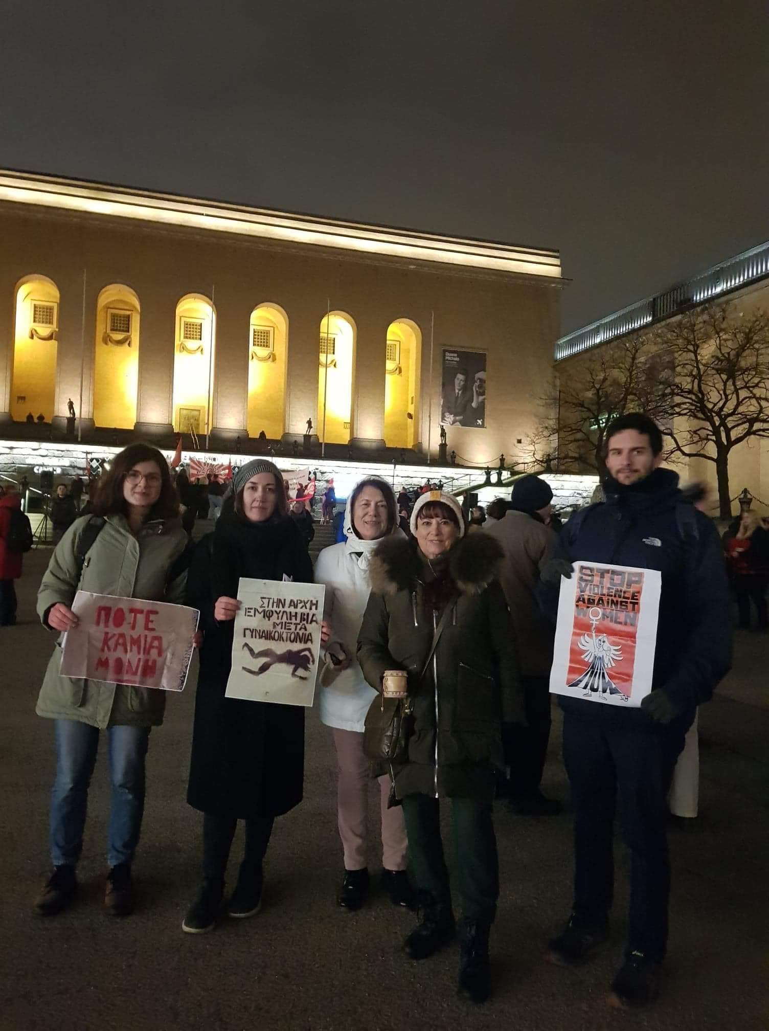 A year ago, groups of Greek migrants living in several countries in Europe and overseas, came together and organised a common day of protest against increasing police violence and authoritarianism in Greece. As the feminist movement is growing stronger in Greece, while femicides and gender violence cases make more and more the headlines, these same groups decided to intervene in the local March 8 actions of the countries they live in, in an attempt to make the situation in Greece known and connect with the local movements. In most cases they participated in the rallies organised in their cities. Big and very lively demonstrations took place in Paris, London, Brussels and Gothenburg and the relevant Greek groups were present with their banners.